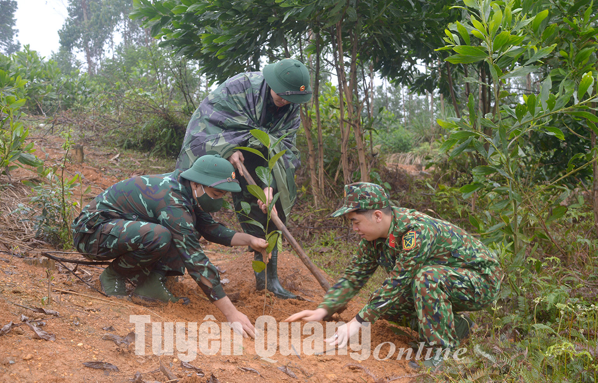 Sau lễ phát động, cán bộ, chiến sỹ lực LLVT tỉnh trồng gần 600 cây ăn quả, cây lấy gỗ tại điểm cao 85, xã Kim Phú (thành phố Tuyên Quang).
