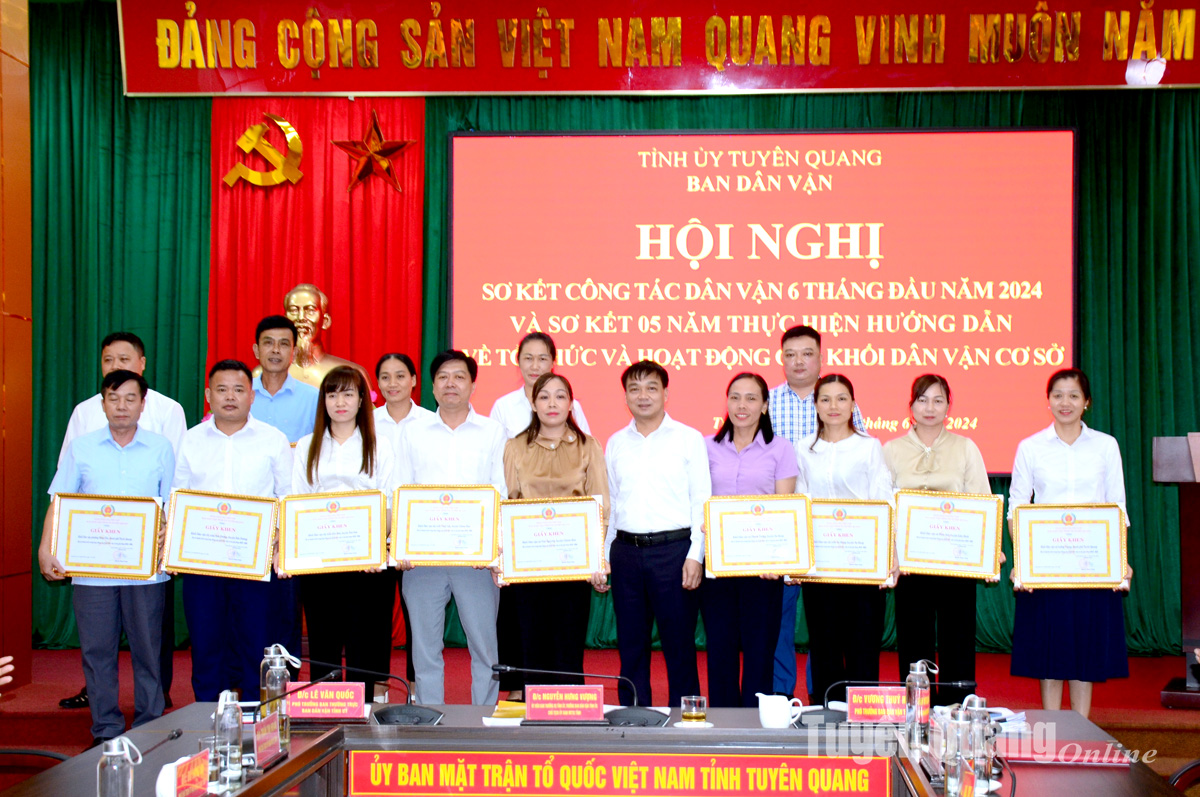 Nhân dịp này, Ban Dân vận trao Giấy khen tặng 52 tập thể và 52 cá nhân Khối Dân vận cơ sở có thành tích xuất sắc trong hoạt động Khối Dân vận cơ sở giai đoạn 2019-2024.