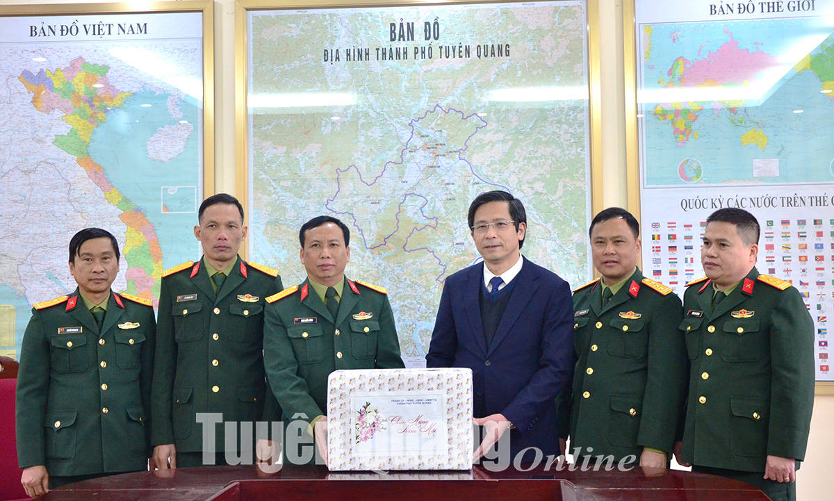 Đồng chí Tạ Đức Tuyên chúc Tết, tặng quà động viên lãnh đạo, cán bộ, chiến sỹ Ban CHQS thành phố Tuyên Quang