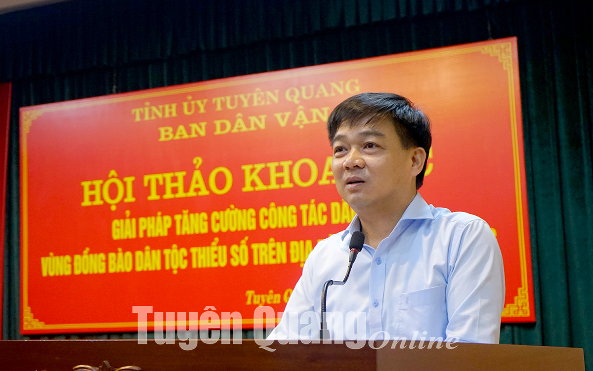 Phát biểu kết luận hội thảo, đồng chí Trưởng ban Dân vận Tỉnh ủy, Chủ tịch Ủy ban MTTQ tỉnh Nguyễn Hưng Vượng tiếp thu các ý kiến tham luận để tiếp tục nghiên cứu, tiếp thu, vận dụng để tham mưu cấp ủy, phối hợp với chính quyền làm tốt hơn nữa công tác dân vận trong vùng đồng bào dân tộc thiểu số.