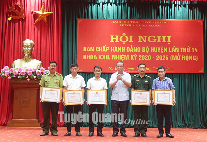 Trong nhiệm vụ 6 tháng cuối năm, huyện Na Hang sẽ tập trung đẩy nhanh tiến độ thực hiện chương trình mục tiêu quốc gia xây dựng nông thôn mới, nông thôn mới nâng cao, chương trình mỗi xã một sản phẩm và phát triển du lịch… Nhân dịp này, Huyện ủy Na Hang đã tặng Giấy khen cho 8 tập thể và 5 cá nhân về thành tích xuất sắc trong thực hiện nhiệm vụ.