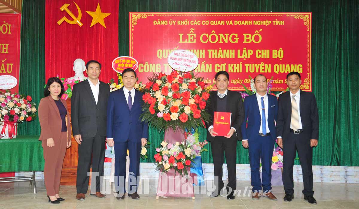 Sáng 9-1, Đảng ủy Khối Các cơ quan và doanh nghiệp tỉnh tổ chức lễ công bố Quyết định thành lập Chi bộ Công ty cổ phần Cơ khí Tuyên Quang. Dự lễ công bố có đồng chí Ma Thế Hồng, Ủy viên Ban Thường vụ Tỉnh ủy, Trưởng Ban Tổ chức Tỉnh ủy, Bí thư Đảng ủy Khối các cơ quan và doanh nghiệp tỉnh; các thành viên Ban Chỉ đạo thành lập tổ chức Đảng trong các doanh nghiệp khu vực ngoài nhà nước.