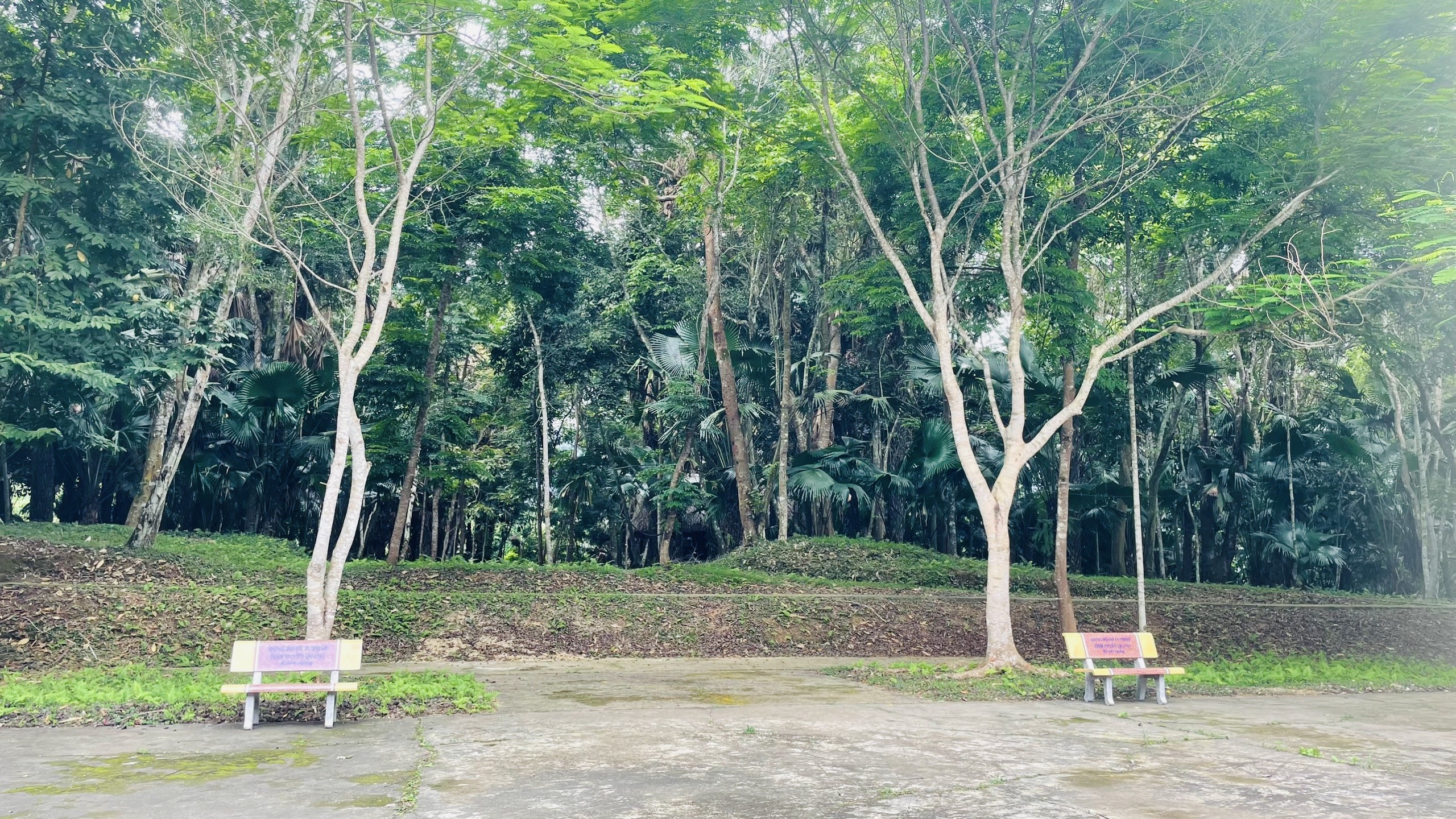 Ghế đá được đặt tại điểm di tích Lán ở và làm việc của Chủ tịch Hồ Chí Minh (Ảnh:  Đức Thành- Sở Tư pháp tỉnh Tuyên Quang)
