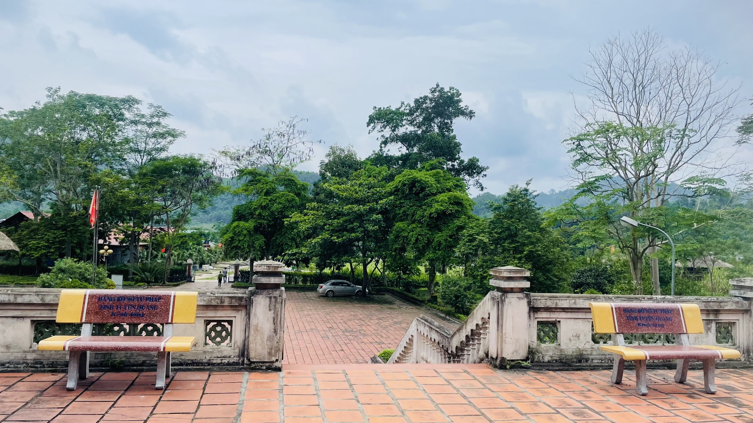 Ghế đá được đặt tại điểm di tích Hội trường nơi họp Đại hội (Ảnh:  Đức Thành- Sở Tư pháp tỉnh Tuyên Quang)