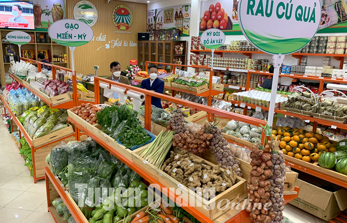 Cửa hàng nông sản xanh Sáng Nhung tại phường Phan Thiết (TP Tuyên Quang) mới khai trương từ 3-1-2022 nhưng đã có một lượng khách hàng ổn định. Theo chị Nguyễn Thị Ngọc, quản lý cửa hàng, để có nguồn hàng ổn định đáp ứng nhu cầu người tiêu dùng sau Tết, cửa hàng có kế hoạch nhập hàng từ trước Tết. Các loại hàng hóa ưu tiên trong thời điểm này là rau xanh, hoa quả và thực phẩm tươi sống. Các mặt hàng tươi sống như thịt lợn cửa hàng chủ động được nguồn cung từ trang trại chăn nuôi tại Sơn Dương. Đồng thời liên kết tiêu thụ sản phẩm thịt trâu tươi cho các HTX chăn nuôi trâu an toàn trên địa bàn tỉnh; liên kết với các HTX sản xuất rau an toàn trên địa bàn phường Hưng Thành, Ỷ La để có rau an toàn bán cho khách hàng từ mùng 4 Tết. Phòng dịch Covid-19, cửa hàng chuẩn bị sẵn nước sát khuẩn, khuyến cáo người tiêu dùng đeo khẩu trang và giữ khoảng cách khi mua sắm để đảm bảo an toàn.