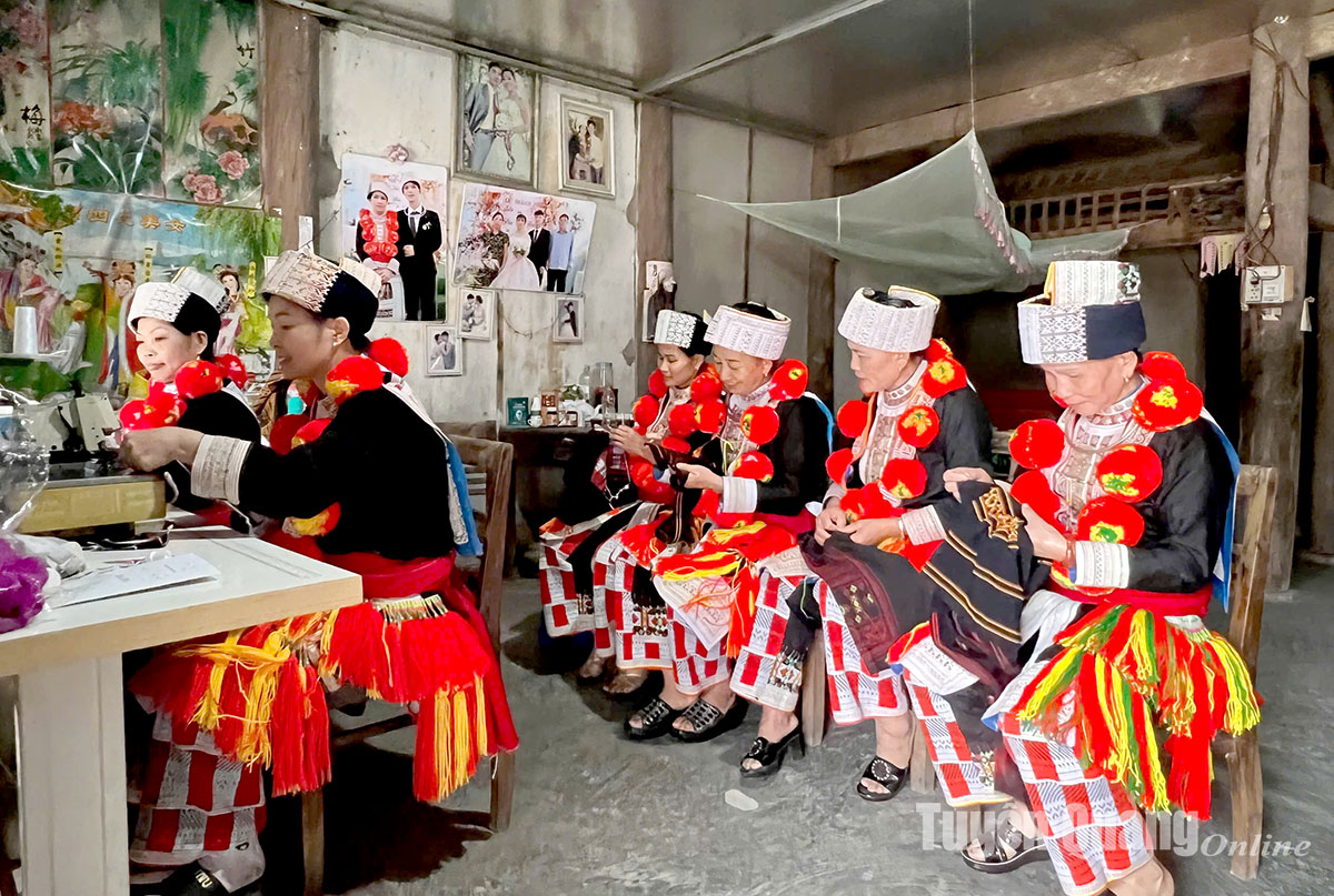 Người dân xã nông thôn mới nâng cao Hoàng Khai (Yên Sơn) giữ nghề thêu truyền thống.