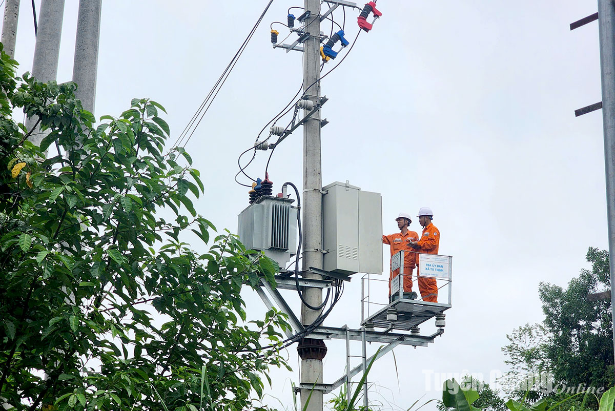 Công nhân Điện lực Sơn Dương kiểm tra an toàn hệ thống lưới điện.