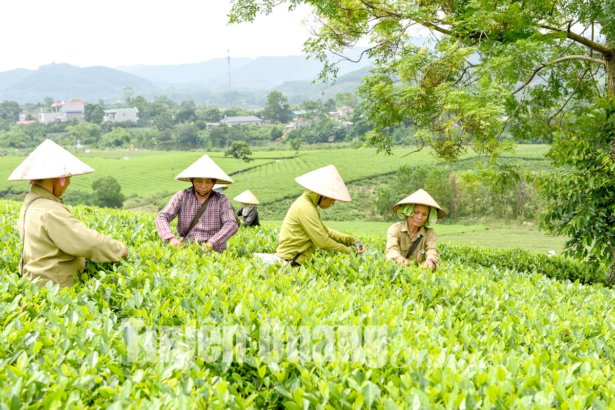 Người dân thôn Làng Bát, xã Tân Thành (Hàm Yên) thu hoạch chè xuân.