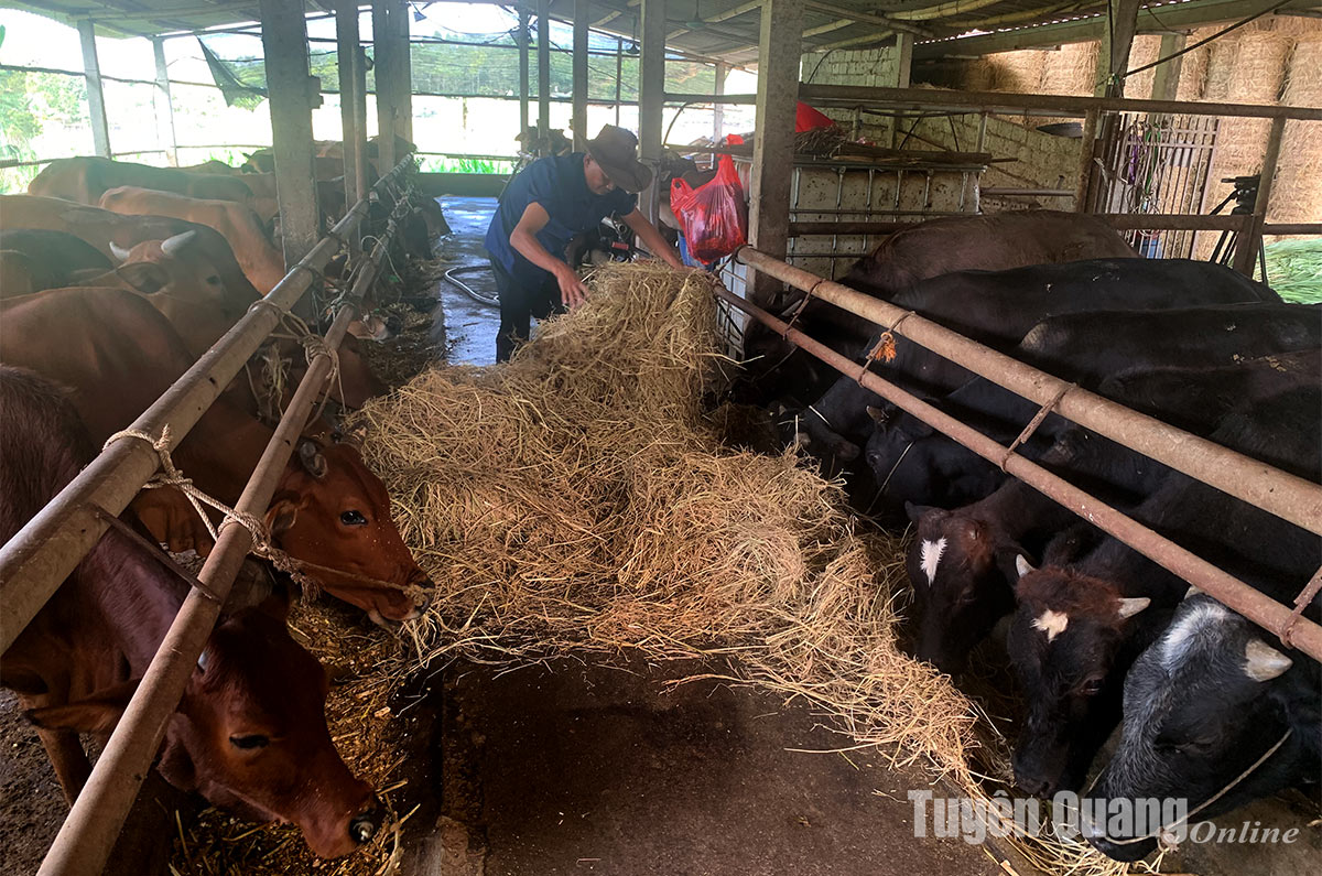 Theo anh Thành, thời tiết ấm mỗi ngày 1 con bò trưởng thành chỉ tiêu thụ hết 3 - 5 kg thức ăn tinh (cám) và 1 lượng thức ăn thô. Tuy nhiên vào những ngày đông lạnh, khẩu phần ăn sẽ được tăng lên 20 - 30% và được chia thành nhiều bữa. Để đảm bảo đủ nguồn thức ăn cho đàn bò, ngoài diện tích cỏ trồng tại trang trại, HTX Thành Long cũng hợp đồng với một số HTX tại huyện Sơn Dương, Yên Sơn cung ứng ngô sinh khối và rơm cuộn.