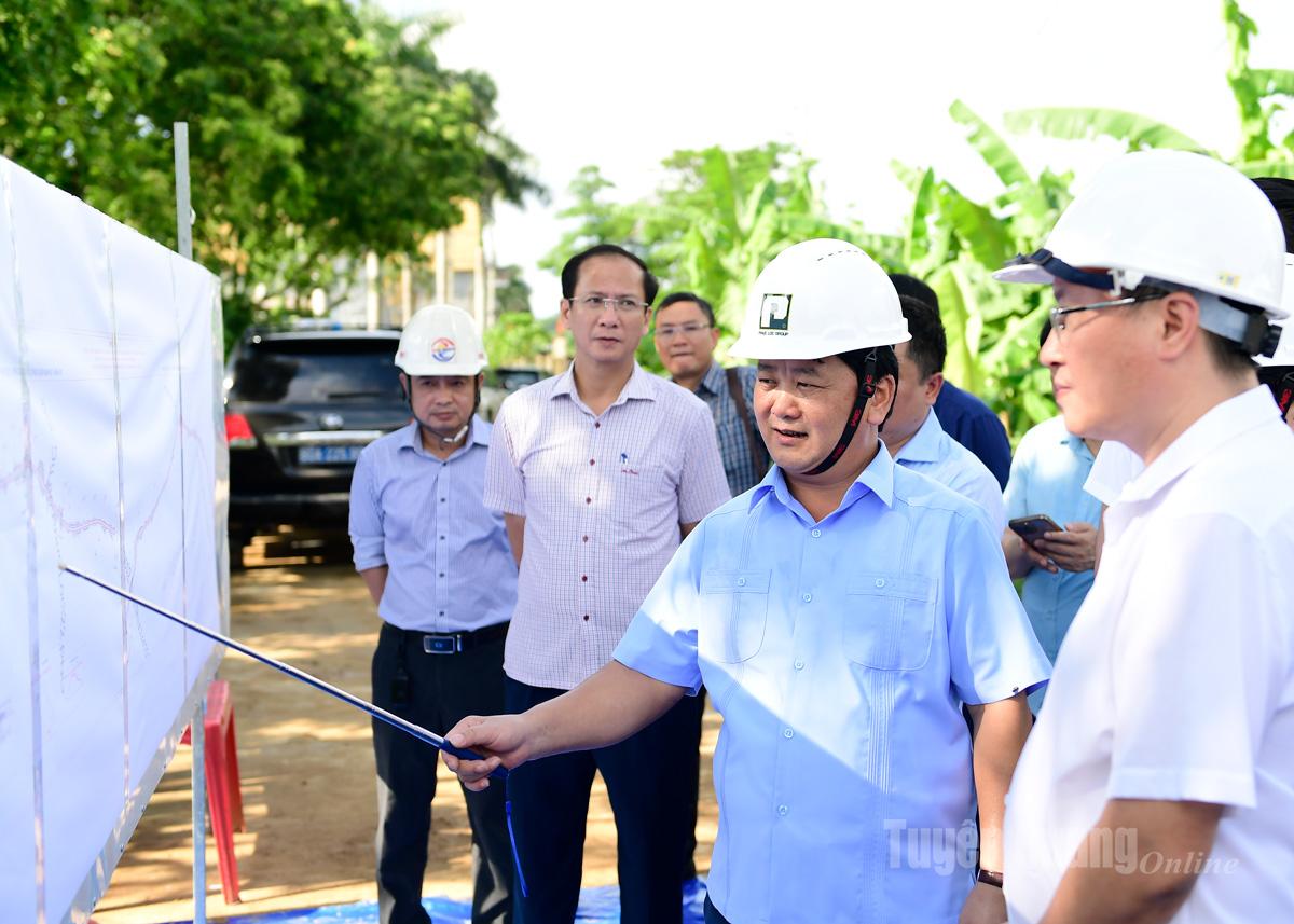 Kiểm tra tuyến đường từ xã Sơn Dương đi xã Tân Trào, đồng chí Bí thư Tỉnh ủy yêu cầu chủ đầu tư, đơn vị thi công đẩy nhanh tiến độ các hạng mục, giải quyết các vướng mắc về mặt bằng, bố trí khu tái định cư cho người dân thuộc diện phải di dời.