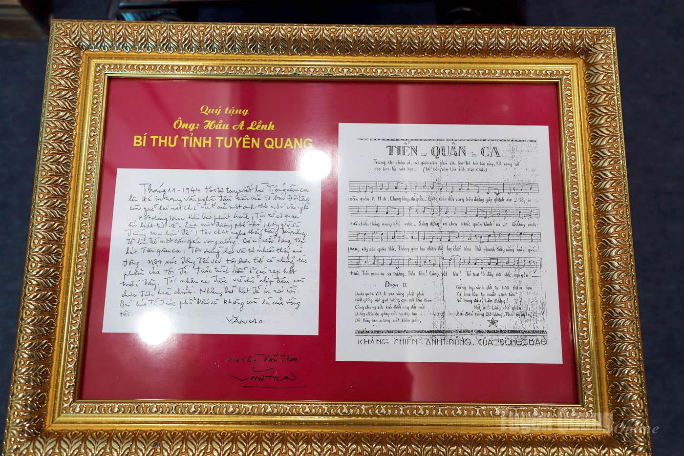 Phát biểu tại buổi tiếp nhận, đồng chí Hầu A Lềnh, Bí thư Tỉnh ủy trân trọng gửi lời cảm ơn tới ông Văn Thao, con trai cố Nhạc sĩ Văn Cao vì đã tin tưởng và trao tặng Bút tích bài hát “Tiến quân ca” cho tỉnh Tuyên Quang.