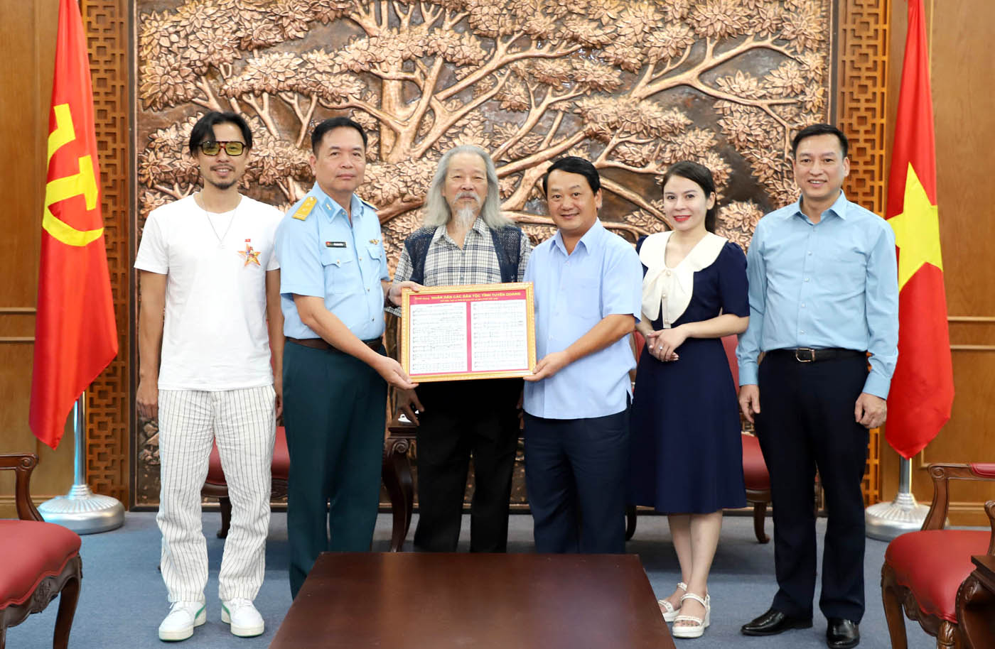 Cũng tại buổi tiếp nhận, Bí thư Tỉnh ủy Hầu A Lềnh cũng tiếp nhận bút tích ca khúc “Tuyên Quang đất mẹ” do nhạc sĩ Bùi Minh Dũng trao tặng.
