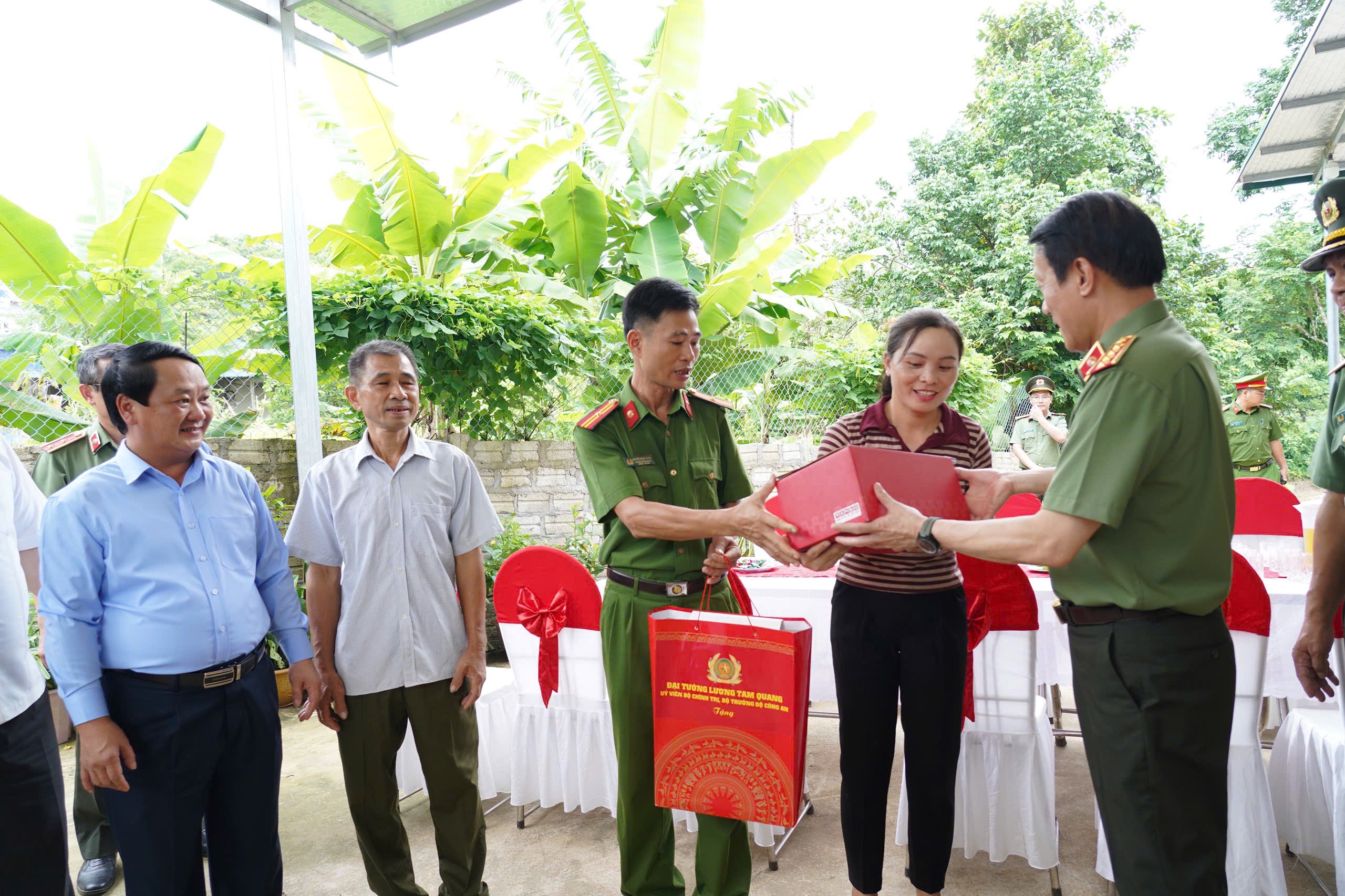 Đại tướng Lương Tam Quang, Bộ trưởng Bộ Công an thăm và tặng quà gia đình ông Nguyễn Văn Luận tại thôn Toa, xã Minh Thanh.