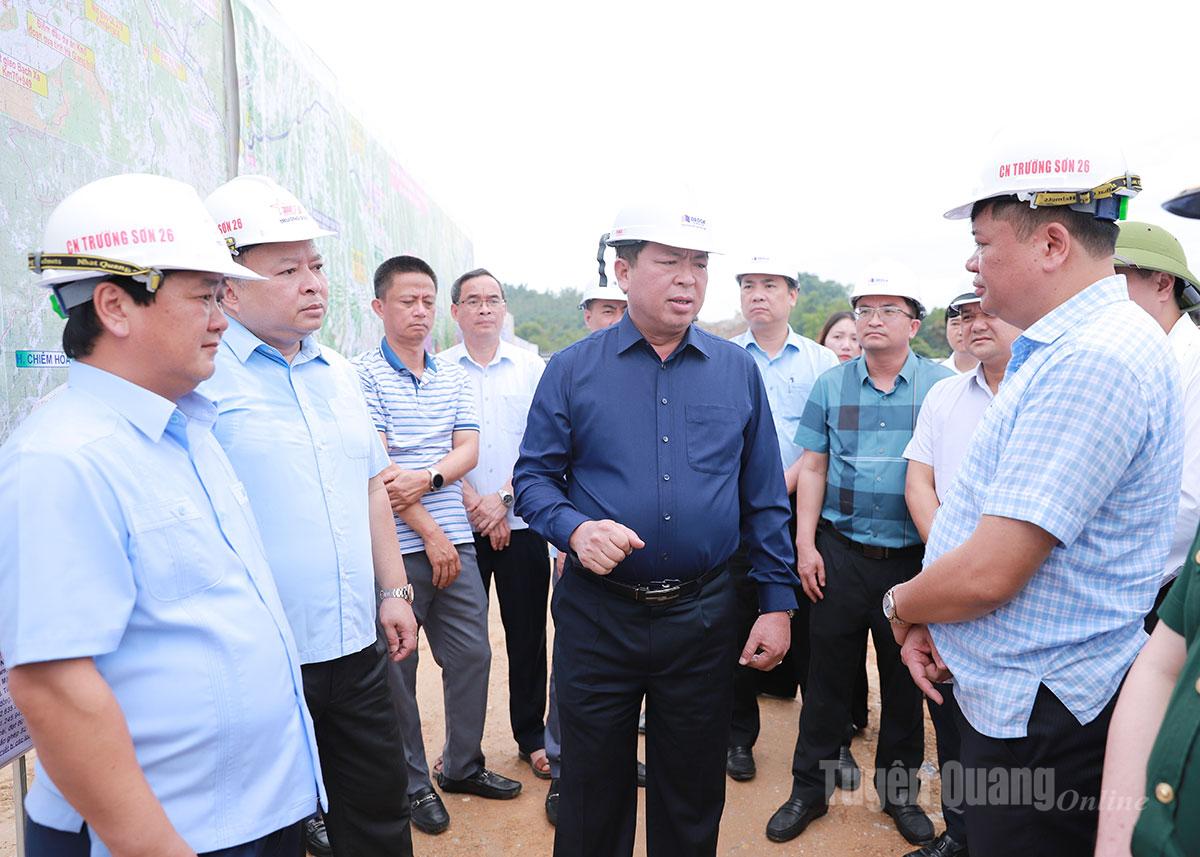 Qua kiểm tra, Bộ trưởng Trần Hồng Minh đề nghị tỉnh Tuyên Quang cần chỉ đạo nhà thầu và các đơn vị thi công tranh thủ thời tiết thuận lợi, thi công “3 ca, 4 kíp”, "làm ngày không đủ tranh thủ làm đêm" đẩy nhanh tiến độ, phấn đấu đến tháng 12-2025 có thể thông xe kỹ thuật quy mô 2 làn xe.