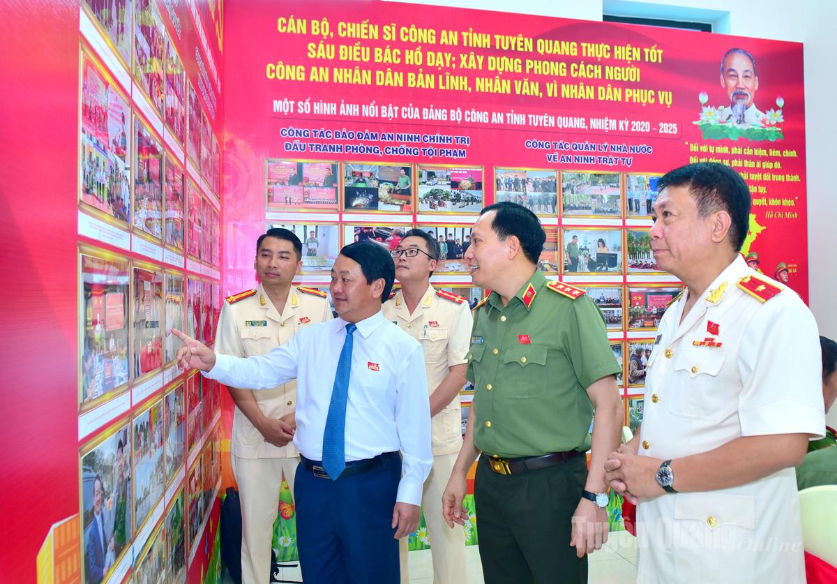 | Các đồng chí: Bí thư Tỉnh uỷ Hầu A Lềnh, Thứ trưởng Bộ Công an Lê Văn Tuyến tham quan gian trưng bày hình ảnh nổi bật của lực lượng Công an tỉnh Tuyên Quang. |