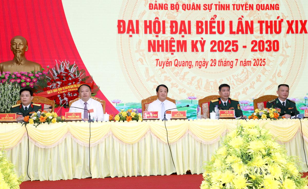 Chiều 29-7, Đảng bộ Quân sự tỉnh long trọng tổ chức Đại hội đại biểu lần thứ XIX, nhiệm kỳ 2025-2030. Dự Đại hội có các đồng chí: Hầu A Lềnh, Ủy viên BCH Trung ương Đảng, Bí thư Tỉnh ủy, Bí thư Đảng ủy Quân sự tỉnh Tuyên Quang; Thiếu tướng Nguyễn Hồng Thái, Ủy viên Ban Thường vụ Đảng ủy, Phó Chính ủy Quân khu 2; Phan Huy Ngọc, Phó Bí thư Tỉnh ủy, Chủ tịch UBND tỉnh; các đồng chí trong Ban Thường vụ Tỉnh ủy; lãnh đạo Bộ Chỉ huy Quân sự tỉnh, các cơ quan Quân khu, các sở, ban, ngành, đoàn thể của tỉnh.