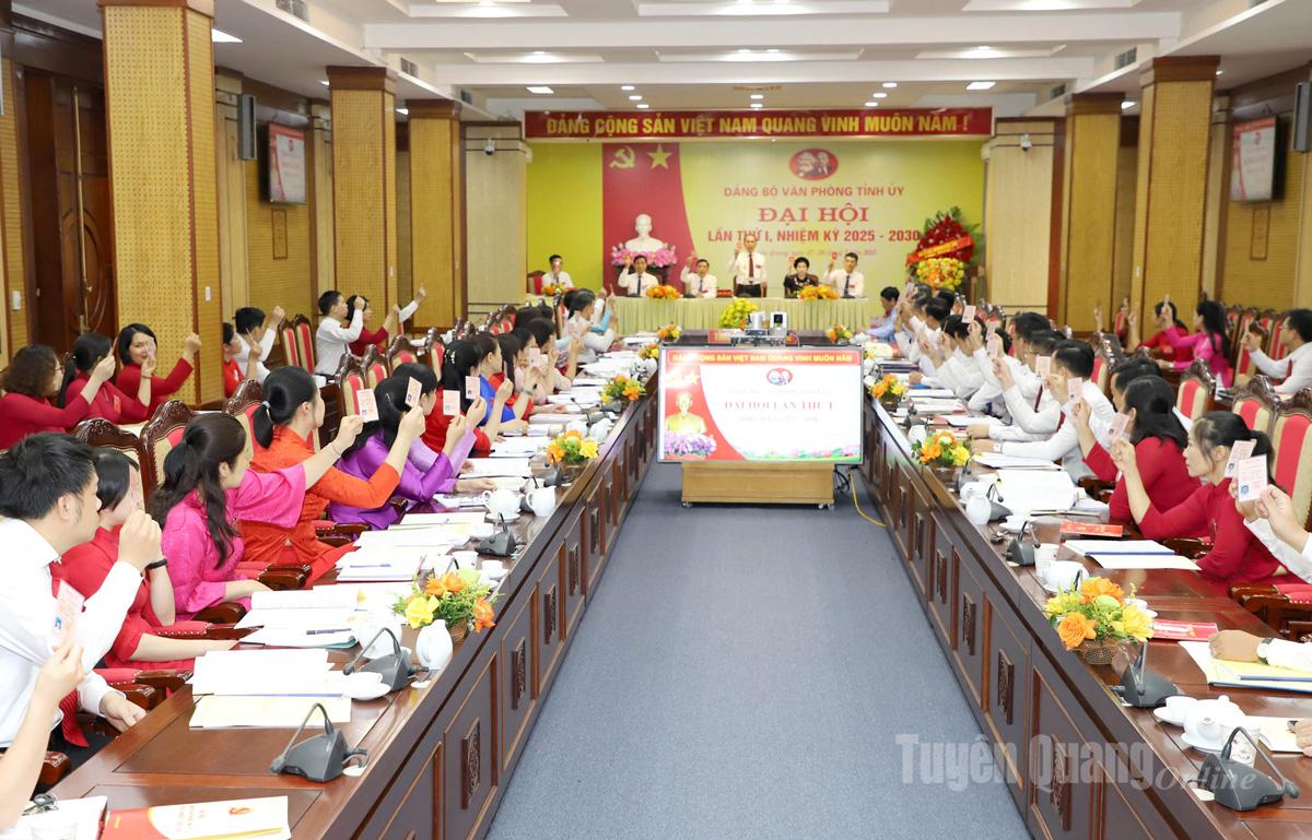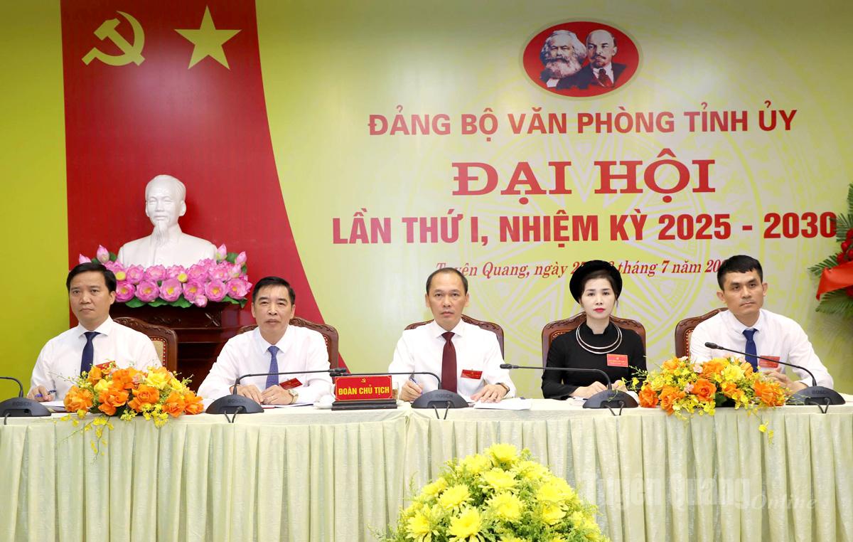 Chiều 28-7, Đảng bộ Văn phòng Tỉnh ủy Tuyên Quang tổ chức Đại hội đại biểu lần thứ nhất, nhiệm kỳ 2025-2030. Dự Đại hội có các đồng chí: Hầu A Lềnh, Ủy viên BCH Trung ương Đảng, Bí thư Tỉnh ủy; Ma Thế Hồng, Phó Bí thư Tỉnh ủy, Chủ tịch Ủy ban MTTQ Việt Nam tỉnh; Nguyễn Hồng Trang, Ủy viên BTV Tỉnh ủy, Phó Bí thư Đảng ủy chuyên trách Đảng bộ các cơ quan Đảng tỉnh; lãnh đạo các Ban xây dựng Đảng Tỉnh ủy và 99 đảng viên Đảng bộ Văn phòng Tỉnh ủy.