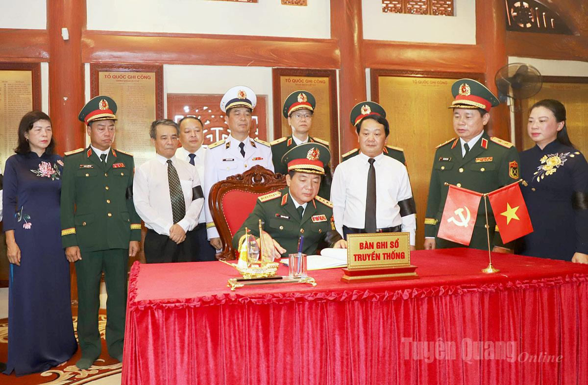 | Đại tướng Trịnh Văn Quyết ghi sổ truyền thống tại Đền thờ các Anh hùng liệt sĩ trong khuôn viên Nghĩa trang Liệt sĩ Quốc gia Vị Xuyên. |