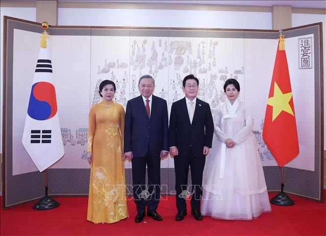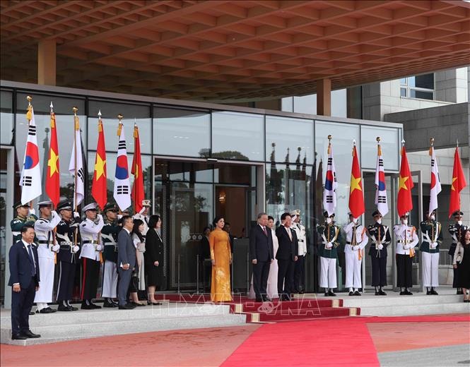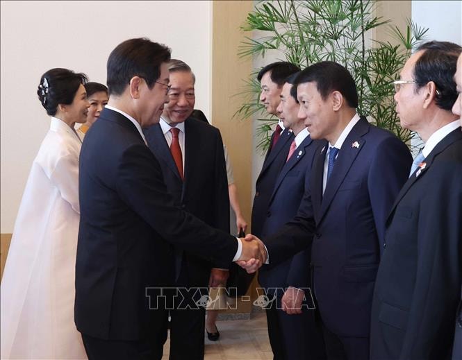 Theo đặc phái viên TTXVN, sáng 11-8, lễ đón Tổng Bí thư Tô Lâm và Phu nhân Ngô Phương Ly cùng Đoàn đại biểu cấp cao Việt Nam thăm cấp Nhà nước tới Đại Hàn Dân quốc (từ ngày 10 đến 13-8) theo lời mời của Tổng thống Đại Hàn Dân quốc Lee Jae Myung và Phu nhân đã được tổ chức trọng thể tại Phủ Tổng thống Hàn Quốc Yongsan.
