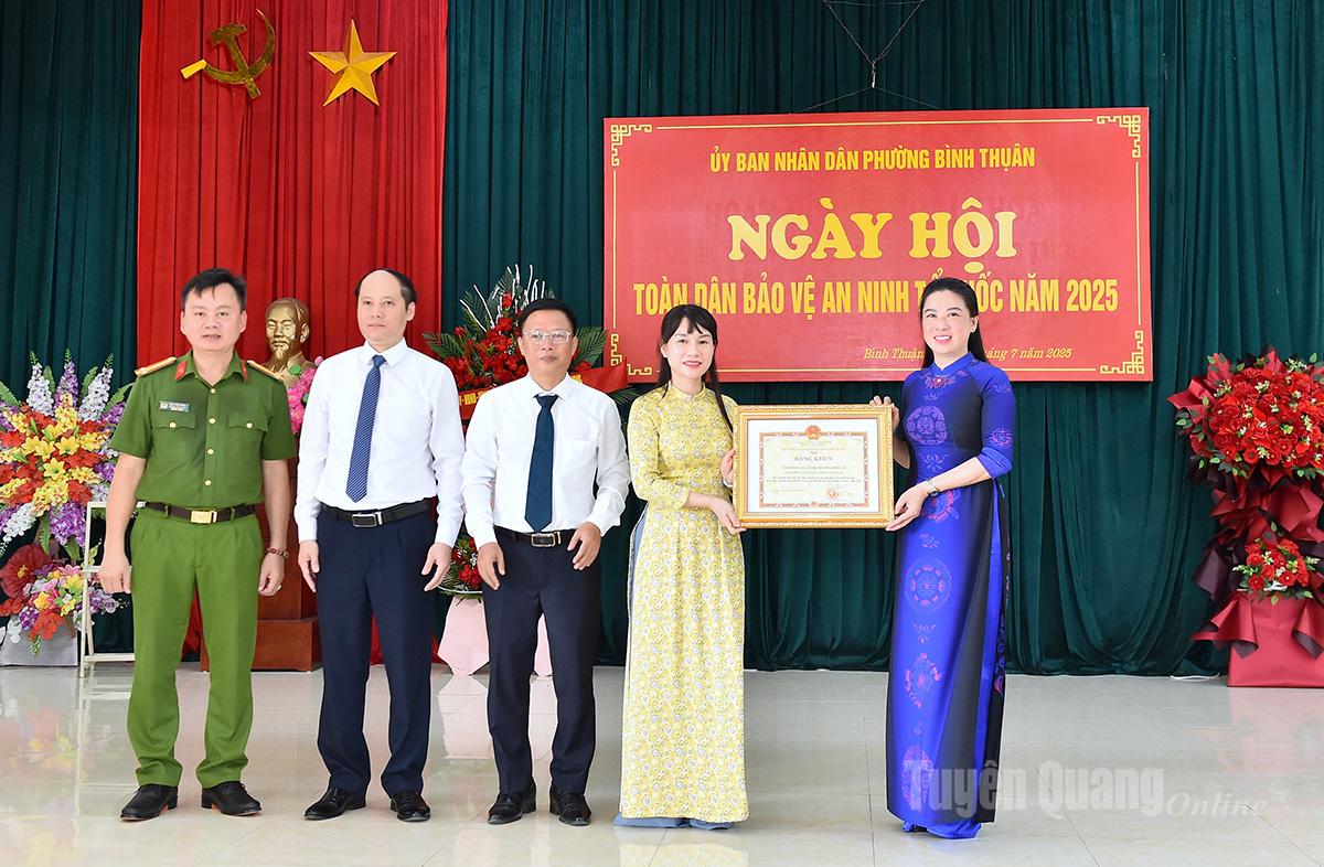 Đồng chí Lê Thị Kim Dung, Phó Bí thư Thường trực Tỉnh ủy và các đại biểu dự Ngày hội toàn dân bảo vệ an ninh Tổ quốc phường Bình Thuận.