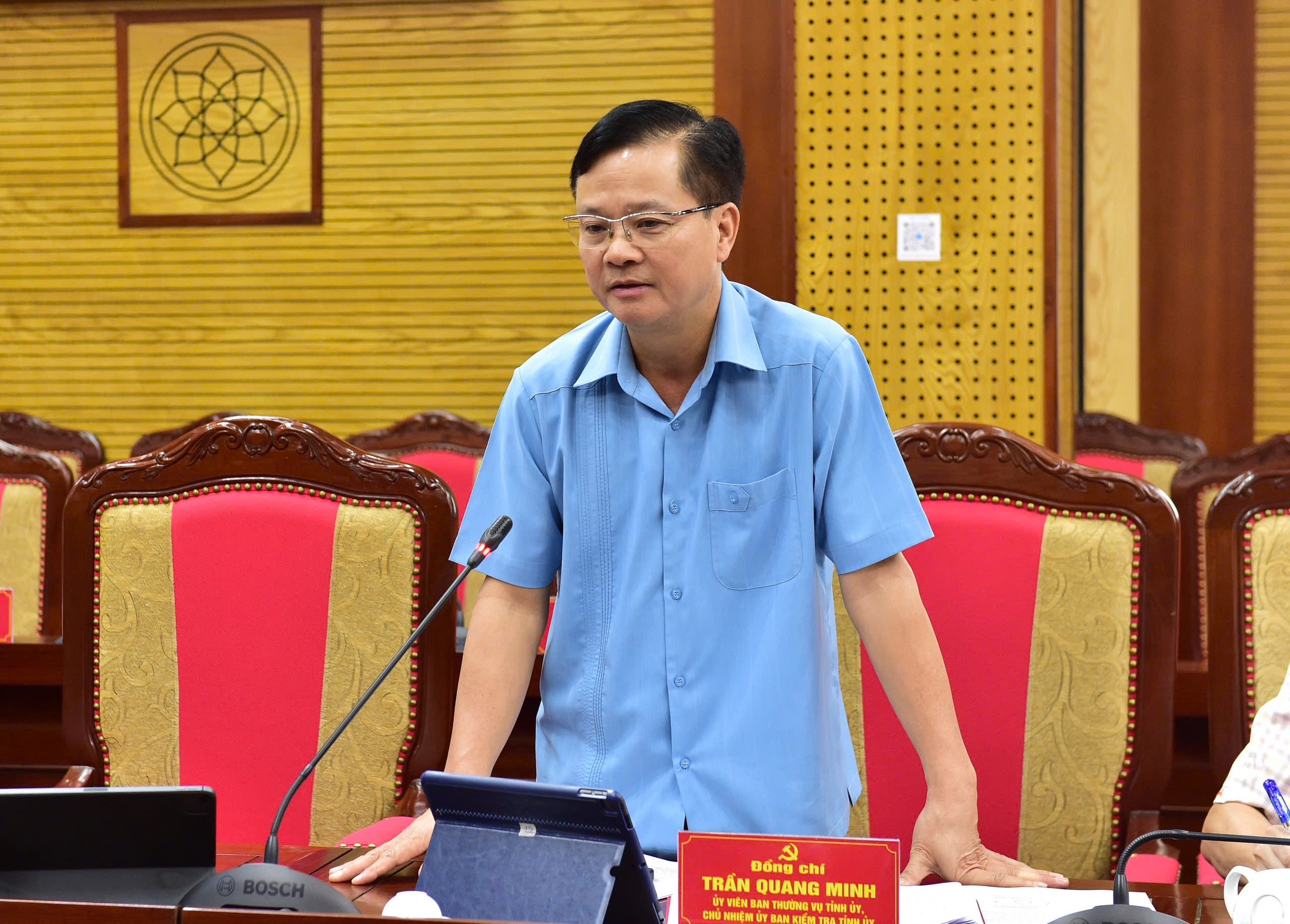 | Đồng chí Chủ nhiệm UBKT Tỉnh ủy Trần Quang Minh phát biểu thảo luận. |