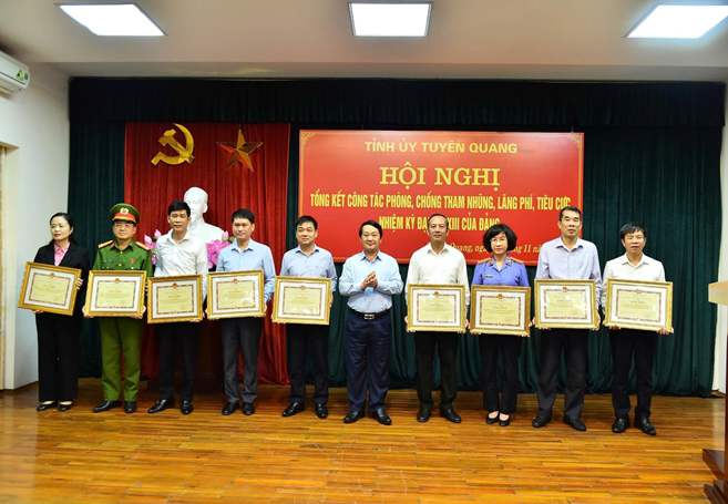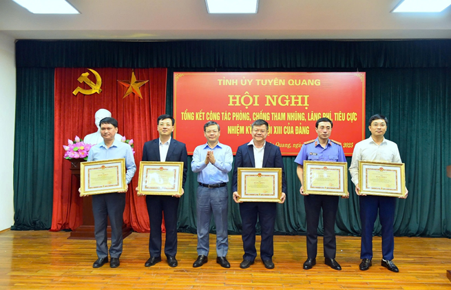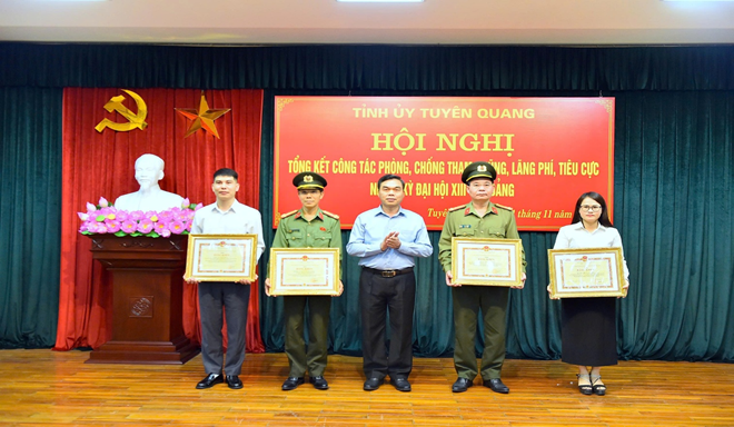 Tại hội nghị, 09 tập thể và 11 cá nhân đã được Chủ tịch UBND tỉnh tặng Bằng khen vì có thành tích xuất sắc trong công tác phòng, chống tham nhũng, lãng phí, tiêu cực trong nhiệm kỳ Đại hội XIII của Đảng.