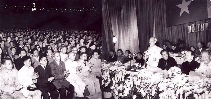 Chủ tịch Hồ Chí Minh phát biểu tại lễ kỷ niệm lần thứ 35 ngày thành lập Đảng Cộng sản Việt Nam, ngày 3/2/1965. (Ảnh tư liệu)