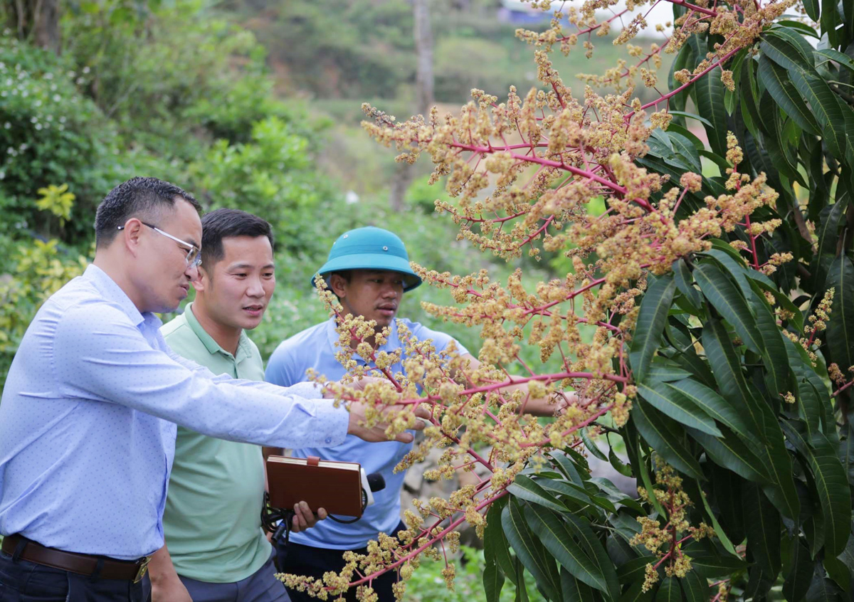 Cán bộ xã Nậm Manh, huyện Nậm Nhùn, tỉnh Lai Châu xuống từng bản hướng dẫn người dân cách chăm sóc vườn cây ăn quả, góp phần phát triển kinh tế, tăng thu nhập cho người dân_Ảnh: TTXVN