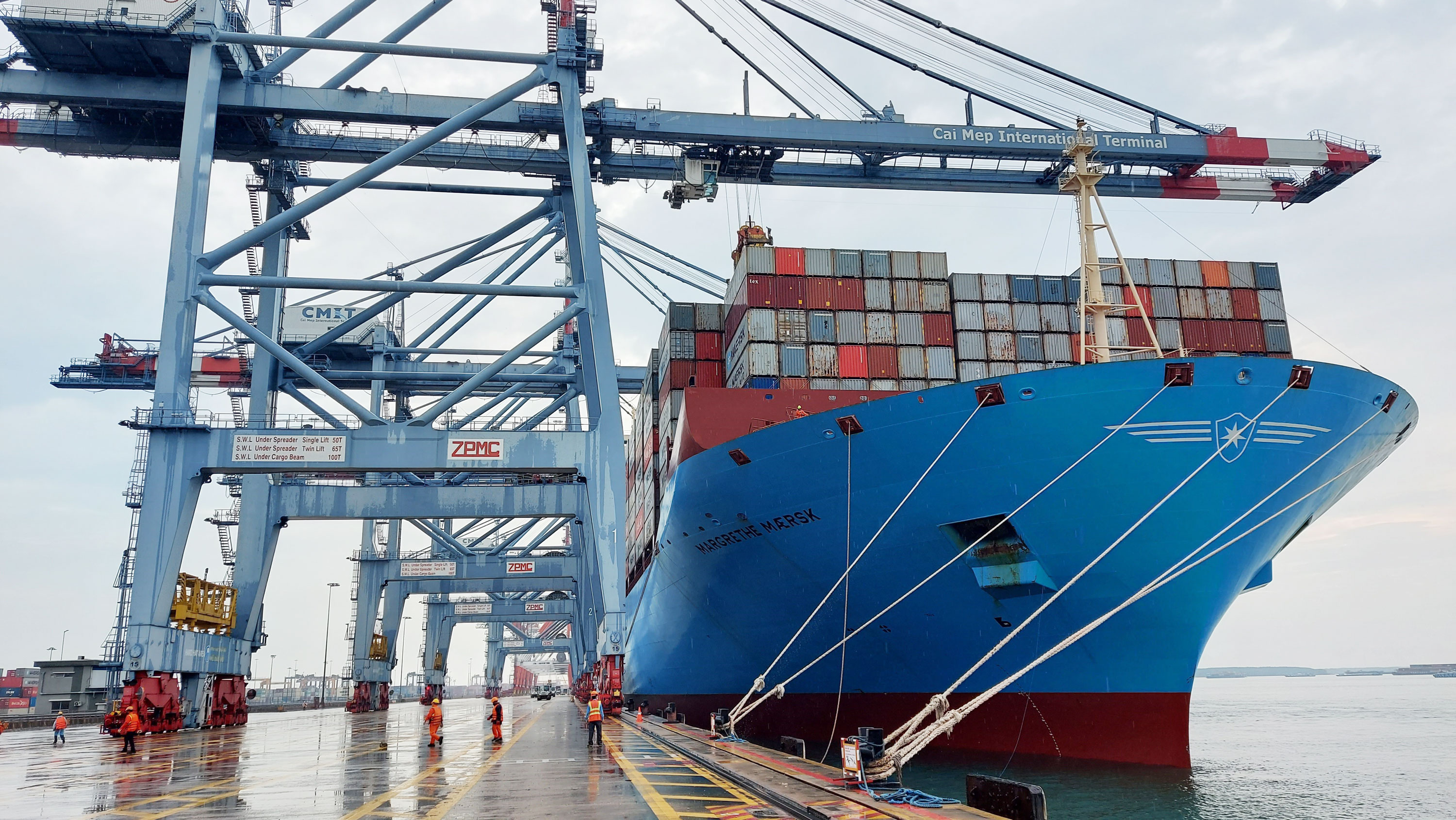 Văn kiện Đại hội Đại biểu toàn quốc lần thứ XIII của Đảng Cộng sản Việt Nam khẳng định con người và nền văn hóa Việt Nam thực sự trở thành sức mạnh nội sinh, động lực phát triển đất nước và bảo vệ Tổ quốc. (Trong ảnh: Siêu tàu chở container Margrethe Maersk bốc xếp hàng hóa tại cảng Cái Mép (tỉnh Bà Rịa - Vũng Tàu)) _Ảnh: TTXVN