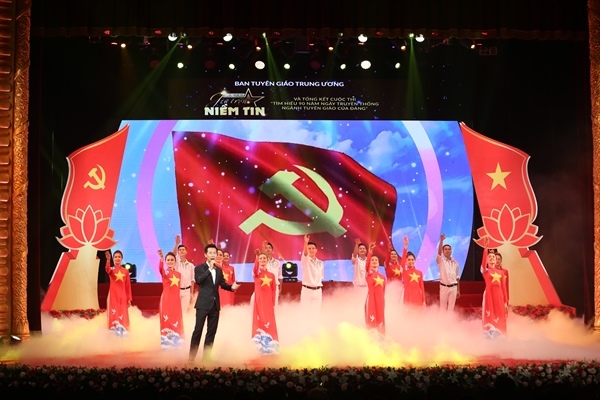 Tiết mục trong Chương trình nghệ thuật Giữ trọn niềm tin và tổng kết Cuộc thi “Tìm hiểu 90 năm Ngày truyền thống ngành Tuyên giáo của Đảng”. Ảnh minh họa. Nguồn: baovanhoa.vn