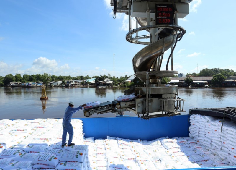 Bốc, xếp sản phẩm phân đạm xuất khẩu của Tập đoàn Dầu khí Việt Nam _Ảnh: TTXVN