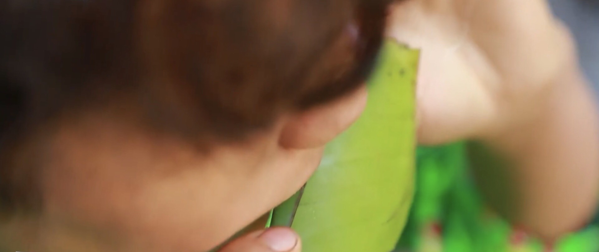 Lá nghiến, lá chuối, lá cây thảo quả…có bề mặt rộng, bóng nhẵn, không có răng cưa thường được người Mông sử dụng để làm kèn lá