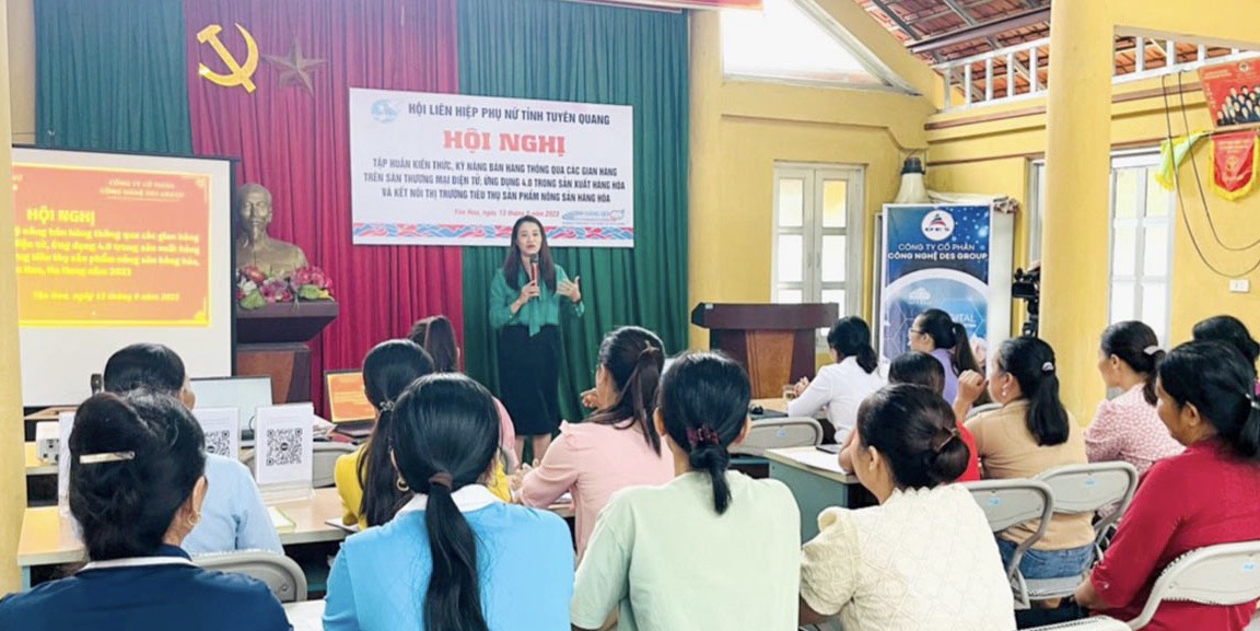 Tập huấn kỹ năng bán hàng trên sàn thương mại điện tử, ứng dụng 4.0 vào sản xuất và tiêu thụ nông sản hàng hóa Câu lạc bộ dệt Thổ Cẩm xã Yên Hoa (Na Hang)