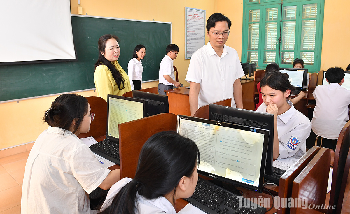 Lãnh đạo Sở Giáo dục và Đào tạo kiểm tra công tác tổ chức thi thử trực tuyến tại Trường THPT Nguyễn Văn Huyên (TP Tuyên Quang).