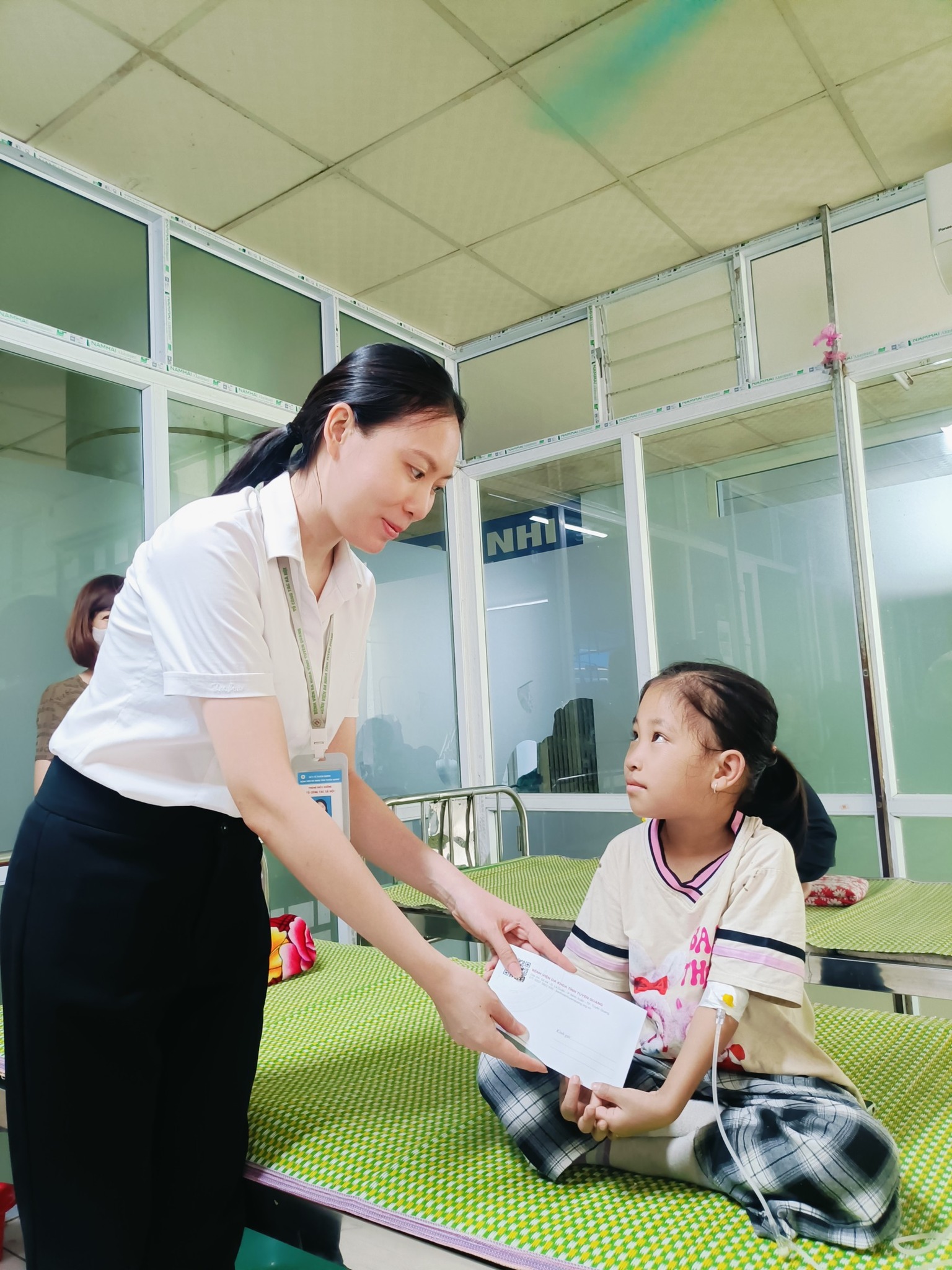 Nhân dịp Tết Trung thu 2025, nhà hảo tâm Nguyễn Thị Yến (facebook Lương Yến), thôn 13 – xã Tân Long, Tuyên Quang đã trao tặng 22 suất quà, mỗi suất là 150.000 đồng (tổng cộng là 3.300.000 đồng) tới các bệnh nhi có hoàn cảnh khó khăn đang điều trị tại Khoa Nhi, Bệnh viện Đa khoa tỉnh Tuyên Quang.