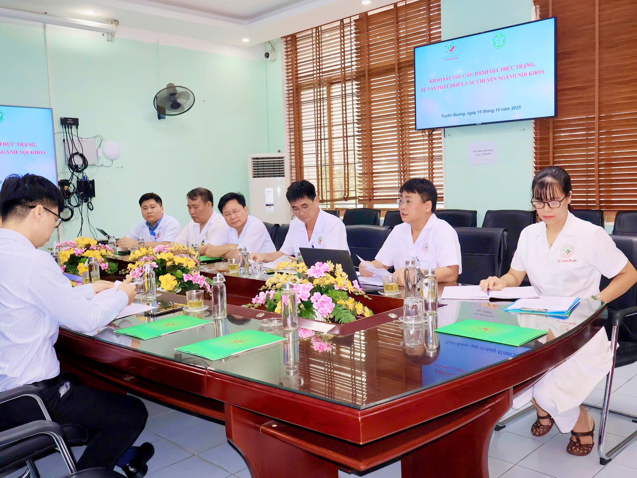 Ngày 15/10/2025, Tại hội trường B, Bệnh viện Đa khoa tỉnh Tuyên Quang phối hợp cùng Bệnh viện Bạch Mai tổ chức chương trình khảo sát nhu cầu, đánh giá thực trạng và tư vấn phát triển các chuyên ngành Nội khoa, trong khuôn khổ Đề án 1816 của Bộ Y tế.