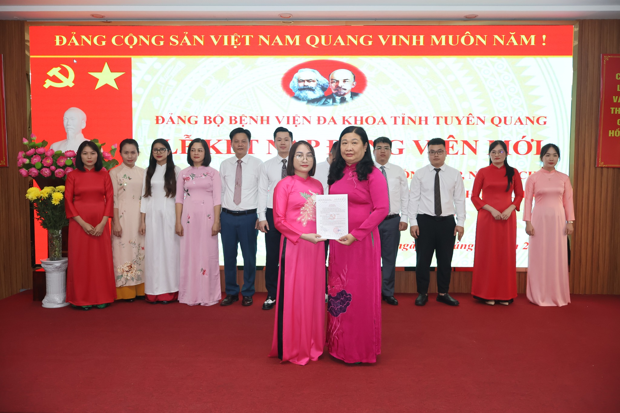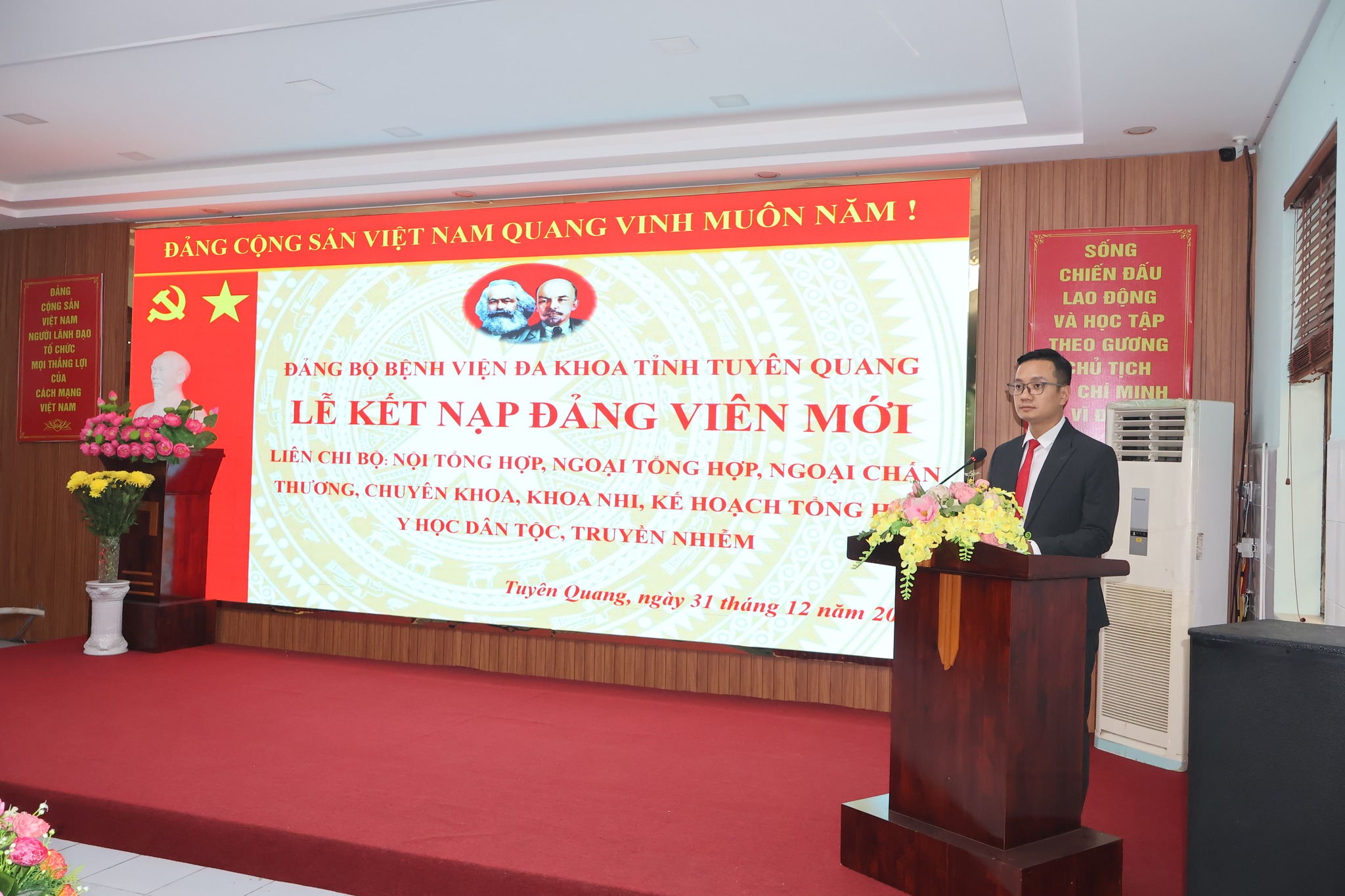 Phát biểu tại buổi lễ, đồng chí Phạm Thị Ánh Tuyết - Đại diện Đảng ủy Bệnh viện Đa khoa tỉnh Tuyên Quang đã chúc mừng các đồng chí đảng viên mới được đứng trong hàng ngũ của Đảng Cộng sản Việt Nam, đồng thời đề nghị các đồng chí tiếp tục phát huy tinh thần trách nhiệm, tính tiên phong, gương mẫu của người đảng viên; gắn việc thực hiện nhiệm vụ chuyên môn với công tác xây dựng Đảng; không ngừng nâng cao chất lượng khám, chữa bệnh, xây dựng Bệnh viện đa khoa tỉnh Tuyên Quang ngày càng phát triển vững mạnh, xứng đáng với niềm tin của người bệnh và nhân dân.