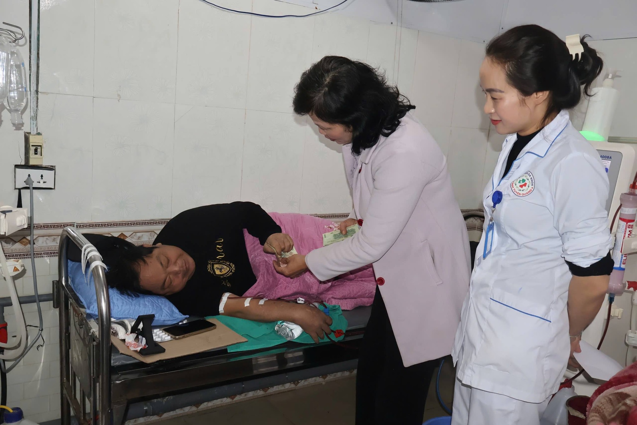 Những ngày cuối năm, khi ai cũng mong được sum vầy, chuẩn bị đón Tết trong niềm vui đoàn tụ, thì tại Phòng Đơn nguyên Thận nhân tạo – Khoa Nội Thận – Khớp, Bệnh viện Đa khoa tỉnh Tuyên Quang, vẫn còn đó những người bệnh ngày ngày gắn mình với máy lọc máu để duy trì sự sống. Giữa lặng lẽ và nhọc nhằn ấy, yêu thương lại một lần nữa được gửi đến bằng những nghĩa cử âm thầm nhưng vô cùng ấm áp.